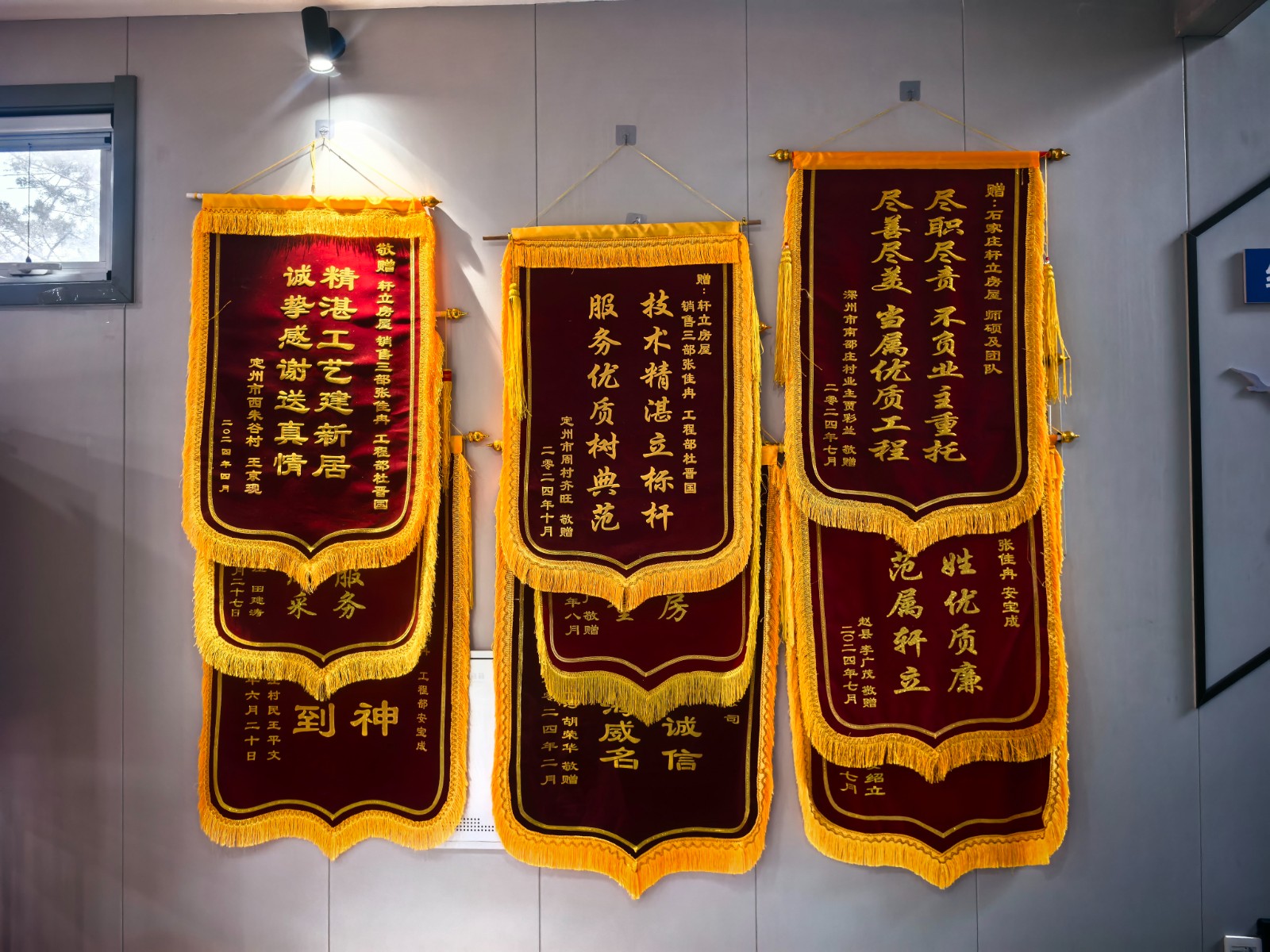 藁城楊玉平先生送來的錦旗,特別致謝了業(yè)務(wù)經(jīng)理王明珍、項目經(jīng)理安寶成及施工班組。這份全景式的致謝,印證了軒立房屋從銷售到交付的全流程專業(yè)服務(wù)。