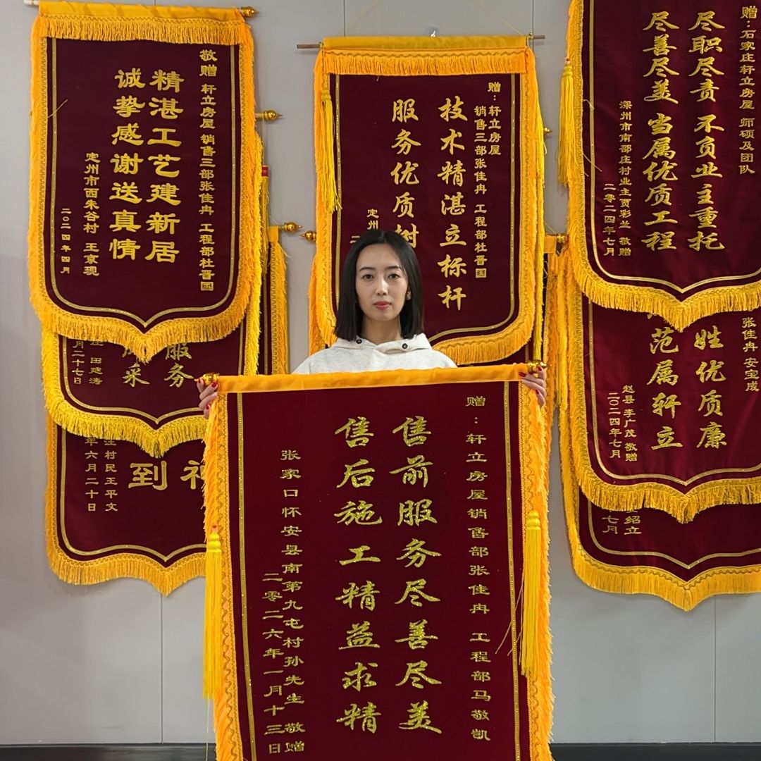 近日,軒立房屋接連收獲了三面來自業(yè)主的錦旗。紅底金字,熠熠生輝,每一面都承載著一份沉甸甸的認(rèn)可。他們從張家口懷安縣、保定唐縣、石家莊藁城區(qū)跨越而來,地域雖不同,贊譽卻同歸——共同訴說著對軒立房屋專業(yè)建房服務(wù)與卓越施工品質(zhì)的褒獎。